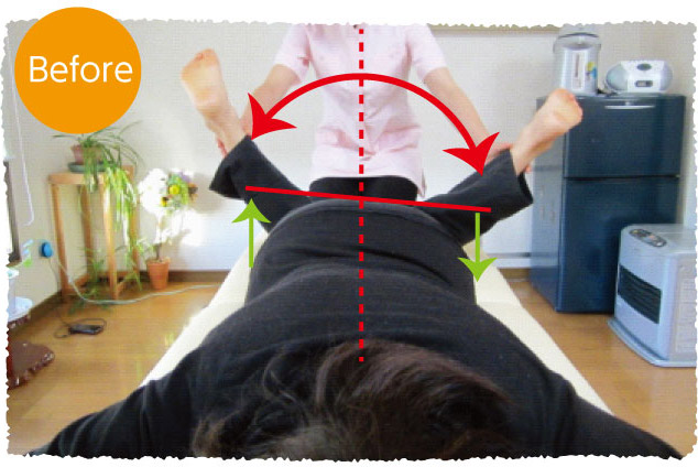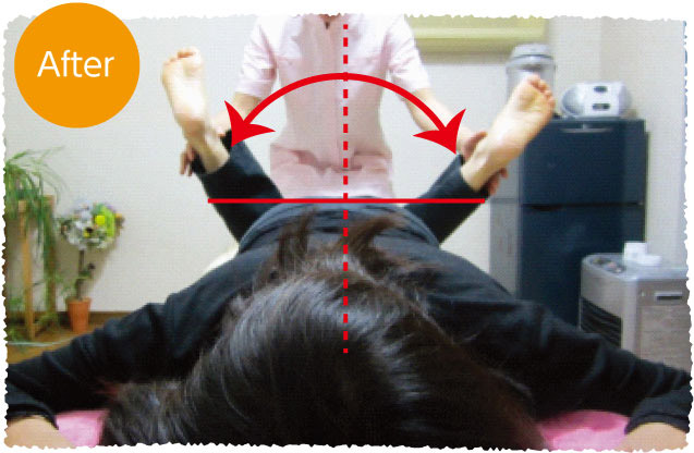 瞬間調整法なので、その場でBefore Afterの変化を、見た目でも、触った感覚でも感じられます。写真で見ると客観的に見られるので、より変化が分かっていただけます。