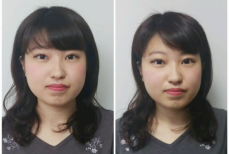 アゴのラインが前に比べてスッキリ・唇からアゴの幅も小さくなり小顔になっています。